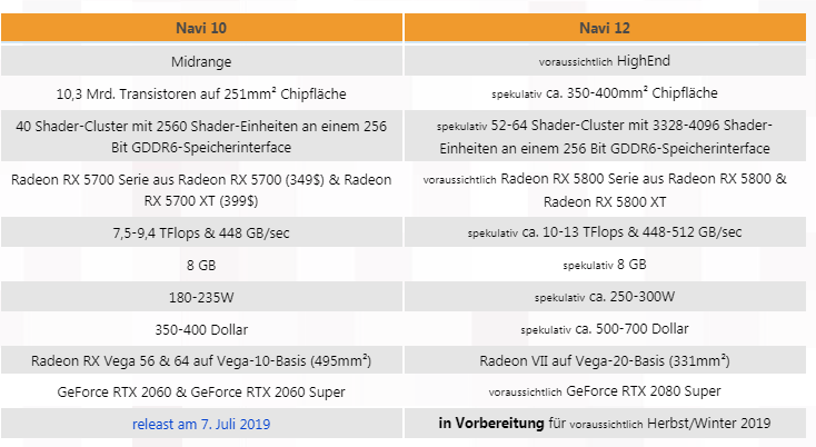 По мнению экспертов, нас ждет на 30-50% увеличенная площадь кристалла, невероятная производительность на уровне 13 TFlops, до 4096 потоковых процессоров и память стандарта HBM2. В источнике упоминается 256-битная шина памяти и TDP до 300 Вт. Как полагают эксперты, цена на такую видеокарту может доходить до 600 долларов, оставаясь конкурентной в сравнении с GeForce RTX 2080 SUPER. С примерной таблицей спецификации вы можете ознакомиться выше. Кроме того, по ссылке больше аналитической информации на эту тему.
