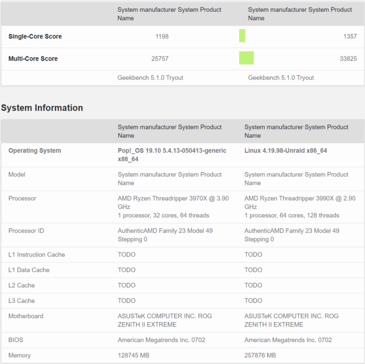 Как видите, в однопоточном режиме он набирает 1357 баллов, в многопотоке – 33825 баллов. Это на 35% выше показателей Threadripper 3970X. Что важнее, это значительно больше, чем набирают любые процессоры Intel и даже больше текущего лидера рынка – EPYC Rome 7742.