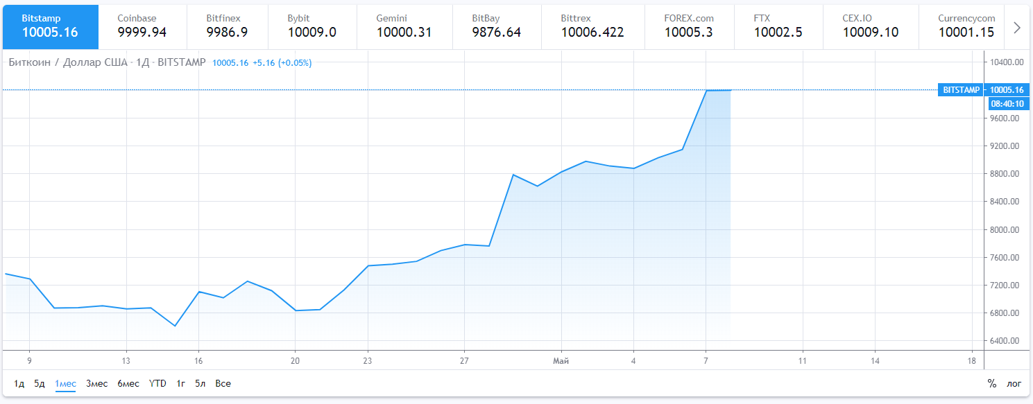 В конце апреля наметился некоторый рост, связанный с оптимизмом инвесторов, однако только сейчас криптовалюта снова начала подниматься. Ещё 3 недели назад Биткоин стоил около 6 500 долларов, а сейчас начал резко подниматься, достигнув 10 000. Впереди халвинг Биткоина – это когда вознаграждение внезапно снизится ровно в 2 раза. Аналитики настроены оптимистично, между тем, у экспертов появились новые сведения, которые объясняют резкий рост криптовалюты.