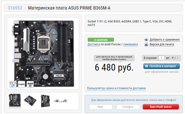 Материнская плата: ASUS PRIME B365M-A. Можно было взять на пару тысяч дешевле, но именно эту модель мы взяли по нескольким причинам: так, она обладает высокой стабильностью, что позволит вам в будущем путём замены процессора существенно увеличить производительность компьютера. Кроме того, здесь есть поддержка всех современных интерфейсов, что позволит установить быстрый твердотельный накопитель, обеспечивающий невероятную скорость загрузки игр.