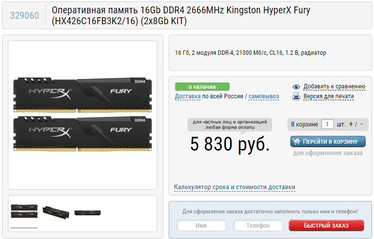 Оперативная память. 16 Гб DDR4 2666 МГц Kingston HyperX Fury. Просто хорошая память в достаточном количестве с нормальными таймингами, гарантией 60 месяцев от известного производителя. А что ещё нужно?