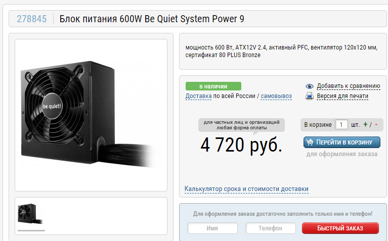 Блок питания. 600W Be Quiet System Power 9. Многие говорят, что это одна из самых важных комплектующих. Может они и правы, но в нашем случае мы имеем довольно экономичную по питанию сборку, которая и с таким блоком покажет себя с лучшей стороны. Выбранная модель стала настоящим компромиссом, ведь она лишена многих фирменных фишек Be Quiet, но несмотря на это вы сможете получить почти полную тишину и уверенность, что ваша система не сгорит из-за некачественного китайского питальника.