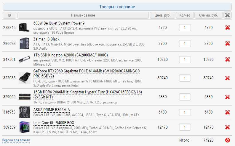 Общий результат 74 220 рублей. Это позволит вам собрать полноценную систему с прицелом на будущее. К примеру, можно докинуть ещё 16 Гб ОЗУ, взять мощнее процессор и видеокарту. Всё это в разумных пределах может с лёгкостью потянуть наш блок питания, а системный блок легко сделать эффективнее за счёт установки двух больших вентиляторов. Данный комплект не идеален, ведь всегда есть место для лучших идей, но с точки зрения эффективности вложений в производительности на доллар, он крайне хорош.