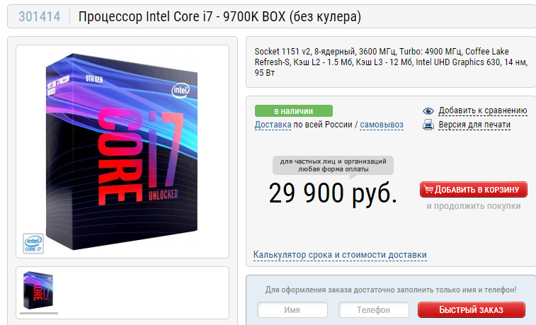 Уличная магия. Серия Core 9-го поколения. Здесь я собираюсь бросить камень в сторону наших продавцов. Логика простая: если сегодня вышло новое поколение процессоров, полностью заменив собой текущее, то стоимость устаревших камней должна упасть. Так было всегда, ведь это отличная возможность для миллионов пользователей получить мощные игровые комплектующие с большим дисконтом. Одновременно с этим – это позволяет производителю быстро вывести с рынка устаревшие камни, которые мешают продажам поколения нового. В этом году мы столкнулись с двумя разными стратегиями, которые призваны сделать всё возможное, чтобы предыдущее поколение как можно дольше оставалось в продаже. Первый вариант: создать искусственный дефицит. Второй вариант: высокие цены на новинки. Наши ребята в рознице отлично оперируют всеми доступными стратегиями, но в данном случае высокие цены им нравятся больше. Core i9-9900K – 37 050 рублей или 490 долларов. Core i7-9700K – 29 900 рублей или 390 долларов. По сравнению с 2019 годом рублёвая цена существенно подросла, но в долларах данная продукция практически не изменилась.