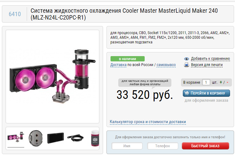 Система жидкостного охлаждения. Cooler Master MasterLiquid Maker 240. Поскольку кулера к процессору не дали, я решил, что мы будем собрать вариант на жидкостном охлаждении. Для себя бы я взял что-то подешевле, но для наших артистов мне ничего не жаль. Надеясь, после покупки, счастливый владелец пригласит толкового оверклокера, который как следует разгонит наш 16-ядерный камушек.