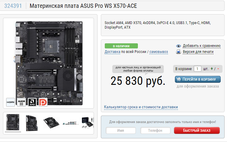 Материнская плата. ASUS Pro WS X570-ACE. Я не уверен, что будущая звёздочка российской эстрады и кино справится с настройками такой крутой платы. Но, если такая потребность возникнет, мы ведь сайт overclockers.ru, а значит в любой момент в комментариях найдутся старожилы, способные разъяснить: "что и как" – на пальцах. Не всё же им ныть об ухудшении контента. А вообще здесь 14 фаз питания плюс продуманное охлаждение самых важных модулей. Плата просто создана для разгона, что позволит превратить Ryzen 9 5950X в ещё более агрессивный и мощный процессор.
