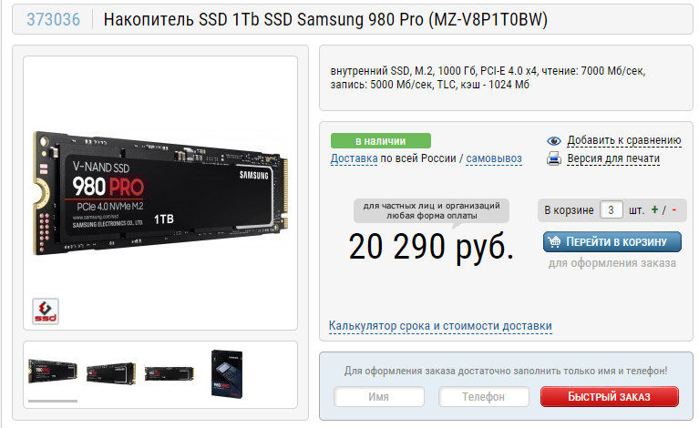 Накопитель. 1Tb Samsung 980 Pro. Я не поскупился и поставил два таких накопителя. Один для игр. Второй под всякие рабочие видосики, аранжировки и тому подобные мелочи плюс под ОС. Думаю, что этого будет достаточно. Что до самого героя, то перед нами SSD с поддержкой PCI-E 4.0, что говорит о его высокой скорости и огромном потенциале. 7 Гб на чтение и 5 Гб на запись хватит на все случаи жизни. Кстати, у него 1 Гб кэша, что снизит задержки до минимума, позволяя заполнить почти весь объём без потери скорости.