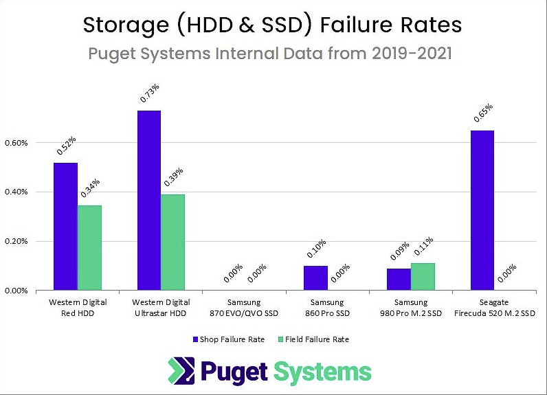 Несколько дней назад крупный американский ОЕМ-сборщик персональных компьютеров Puget Systems подвёл итоги года, а также рассказал, какие комплектующие он считает наиболее надёжными за период с 2019 по декабрь 2021. К сожалению, мы не можем получать данные по выборке, поэтому советуем относиться к результатам данного исследования с долей скепсиса. И всё же, поскольку более точных данных нет, давайте изучим, кто же выпускает некачественную продукцию.