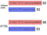 Комнатная температура мониторилась с помощью цифрового термометра в настольных часах и составляла 25 градусов. Температура GPU мониторилась Riva Tuner v2.24 (NV Thermal Diode.dll 0) и бралось её максимальное значение.