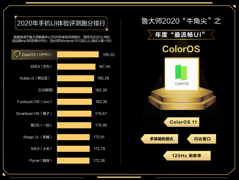 Наиболее плавный интерфейс в 2020 году – ColorOS 11 версии на основе Android 11, разработанная OPPO. Разработчиками в оболочку OPPO внедрены технологии и функции, обеспечивающие лучшую производительность и плавность интерфейса своих устройств. Одна из таких технологий – работа сразу нескольких ядер процессора. Также в оболочке присутствует предзагрузка приложений, которая работает благодаря изучению привычек владельца. Также задействованы многие другие технологии.