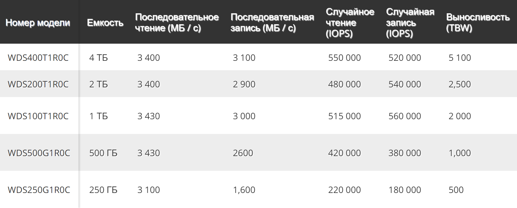 WD Red SN700 обеспечивает скорость последовательного чтения и записи до 3430 Мбит / с и 3100 Мбит / с соответственно. Western Digital оценивает производительность WD Red SN700 до 550 000 операций чтения в секунду и 560 000 операций записи в секунду. Очевидно, что производительность WD Red SN700 зависит от емкости.