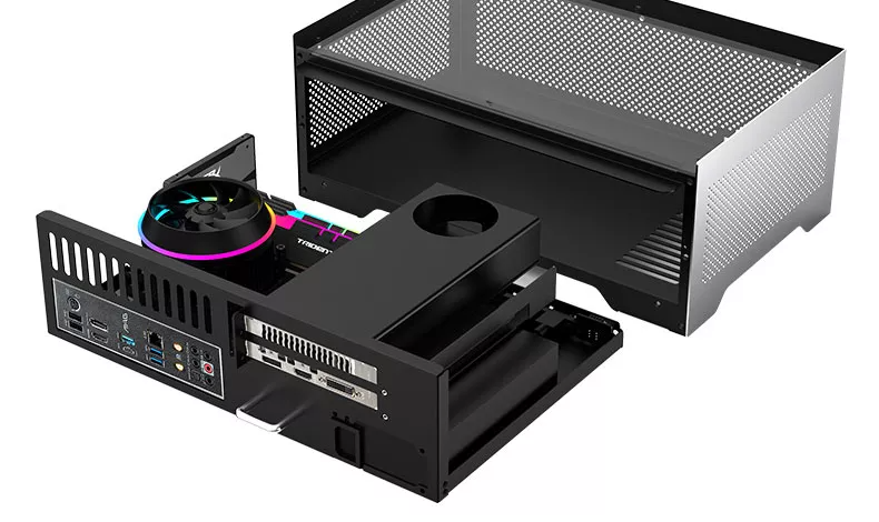 Во-первых, очевидно, что секция для ПК в корпусе Y2 Fish Tank Chassis не очень велика, но сборка ПК не выглядит слишком сложной или ограниченной при использовании компактных и удобных для малого форм-фактора компонентов. В комплект входит даже переходной кабель PCIe, так что вы можете разместить видеокарту под аквариумом. Когда ПК полностью собран, владельцы по-прежнему имеют довольно легкий доступ к компонентам ПК, так как можно выдвинуть материнскую плату и лоток для компонентов после откручивания нескольких винтов.