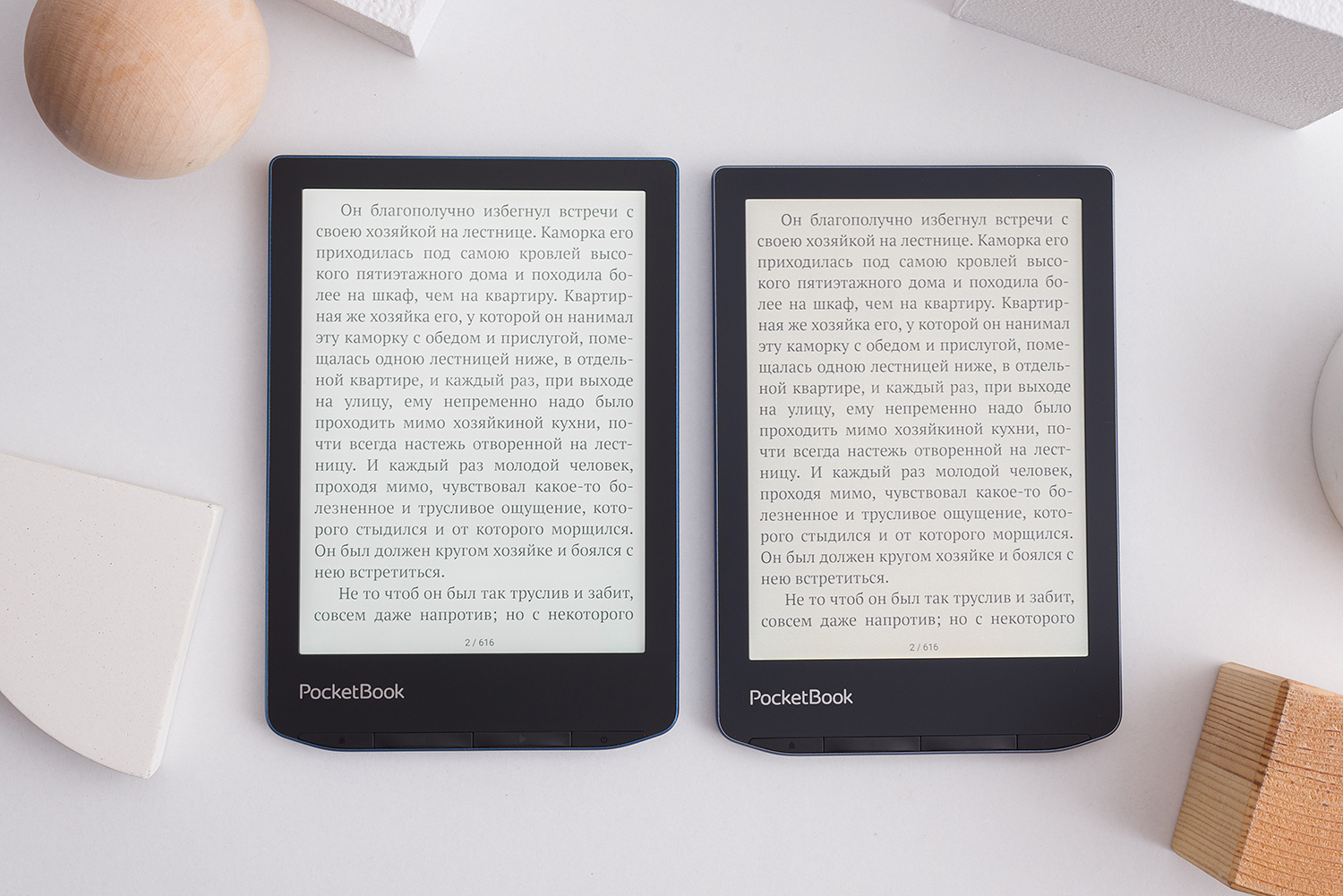 Второй важный момент – цена: в PocketBook решили ничего не требовать за цветной дисплей. Как это понимать? А очень просто: модель PocketBook 634 Verse Pro Color сделана на основе черно-белого ридера PocketBook 634 Verse Pro. Монохромный экран заменили цветным, поставили более мощный процессор и усиленную батарею. При этом стоят эти две модели одинаково: 19 990 рублей. Такую щедрость можно только приветствовать: раньше разница в цене между аналогичными цветными и черно-белыми ридерами составляла 3-5 тысяч рублей.