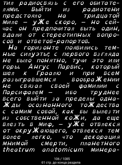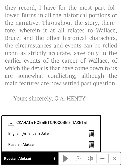 Не вижу смысла описывать все это подробно, так что раскрою лишь два момента. Первый – это работа Text-to-Speech. Логика простая: открываем книгу в каком-нибудь FB2, нажимаем на кнопку – и диктор проговаривает текст голосом. Движок встроенный, и заменить его нельзя. Не скажу, что он худший или лучший в мире – просто обычный. Поэтому бывают проблемы с паузами, с ударением, крайне редко – с произношением. Пользоваться Text-to-Speech можно, иногда он выручает, но лучше постараться и найти нужную книгу в аудиоформате. Кайфа будет больше.