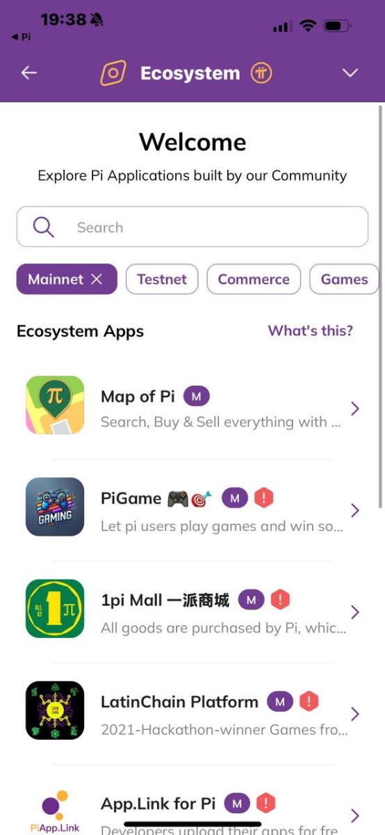 Помимо приложения Pi есть и Pi браузер - отдельное приложение, которое предоставляет доступ ко всей инфраструктуре Pi. Там, в разделе Ecosystem, есть много приложений, например, Pet for Pi, ChatGPT for Pi и другие приложения, построенные на этом блокчейне. То есть это целая система, которая активно развивается. Поэтому я рекомендую обратить внимание на данное приложение. Через Pi браузер можно зайти в сам блокчейн, представляющий собой цепочку из людей, которые прошли KYС и показали, что они не боты, а реальные лица, что очень ценится в криптовалютном мире.