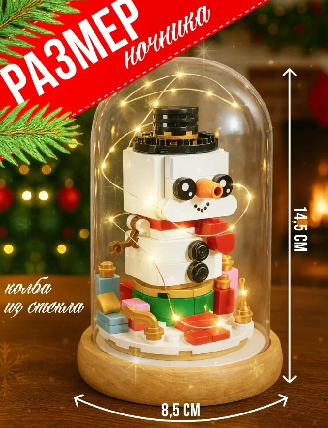 Этот конструктор воспринимается иначе, чем классические наборы. Здесь важна не масштабность, а камерность. Снеговик внутри стеклянной колбы создаёт ощущение тихого зимнего уголка, который хочется рассматривать вечером, когда свет приглушён, а день уже завершён.