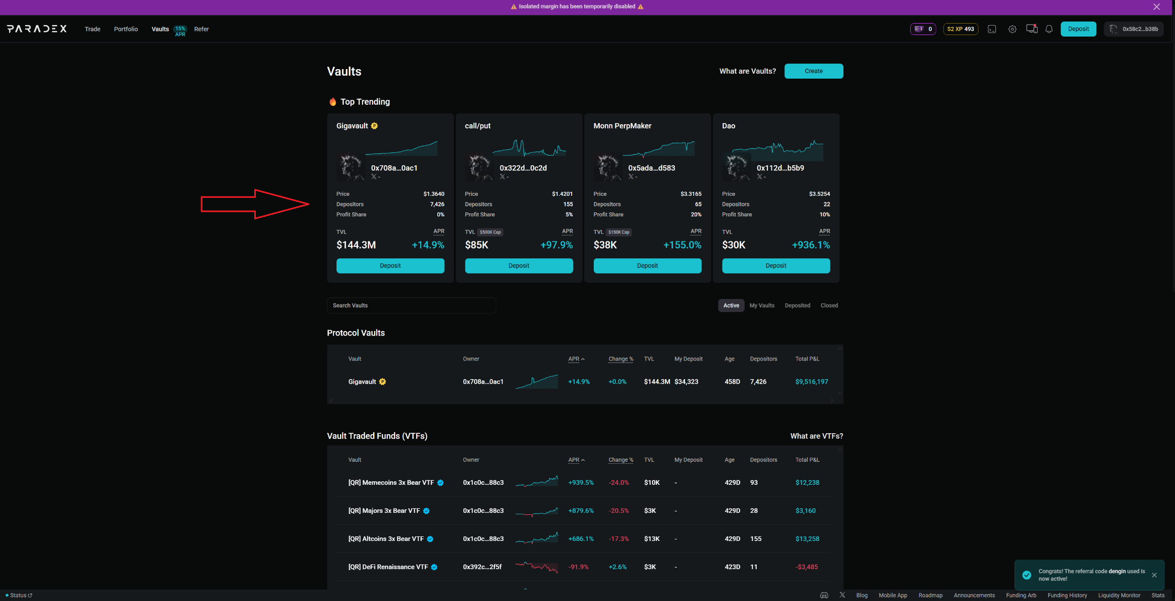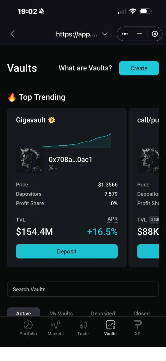Затем на сайте биржи идём в раздел "Vaults" и выбираем самый первый пул "Gigаvault", вводим сумму для внесения и нажимаем "Подтвердить". Никаких транзакций подписывать уже не нужно, поскольку средства находятся внутри платформы.