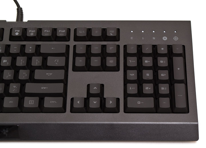 Клавиатура имеет стандартный вид за исключением ряда зелёных индикатор Caps Lock, Num Lock, Scroll Lock, которые дополнены красным светодиодом обозначающего режим записи макрокоманд, а также зелёного диода светящегося при активации игрового режима.