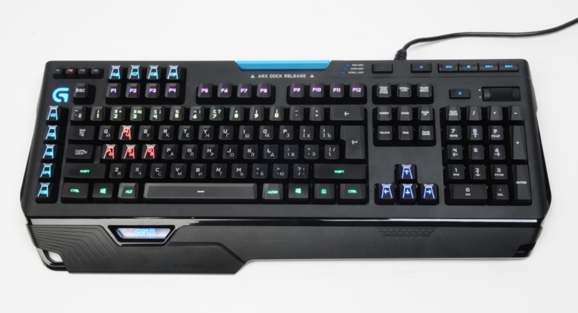 Клавиатура Logitech G910 Orion Spark имеет в своем арсенале абсолютно новые Romer-G переключатели, поддержку технологии Arx Control, а также RGB-подсветку для каждой из клавиш. Внешний дизайн клавиатуры сопоставим с многими другими клавиатурами в данном ценовом сегменте, однако имеет свои отличия. Клавиатура имеет минимум деталей из глянца, поражает весьма умеренный и агрессивный внешний вид.