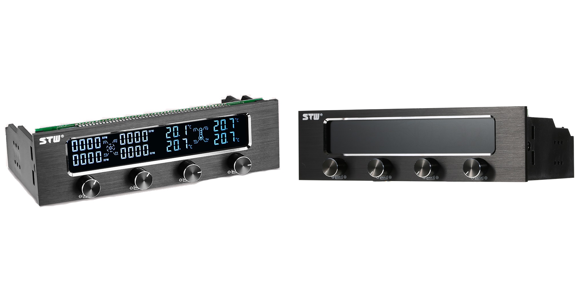 Контроллер скорости вентиляторов STW Fan Speed Controller предназначен для управления скоростью вращения вентиляторов, установленных в корпус персонального компьютера. Контроллер устанавливается в передний отсек 5,25 корпуса ПК. Контроллер имеет 4 ручки управления оборотами вентилятора.