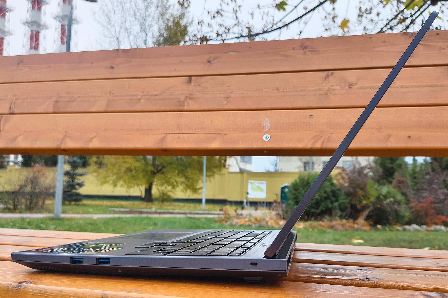 Сборка выполнена качественно – люфты отсутствуют, зазоры минимальны, ничего нигде не продавливается. Работать с ноутбуком удобно как на столе, так и на коленях, а при полном открытии крышка не перевешивает.