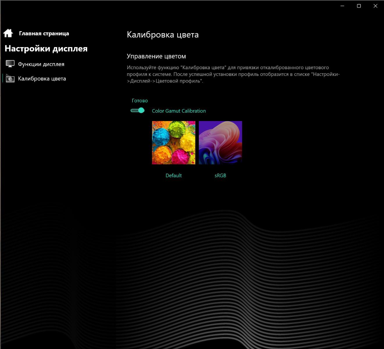 Ноутбук оснащен 16-дюймовым IPS-дисплеем, имеющим соотношение сторон 16:10 и разрешение 2560x1600 (189 ppi) – компромиссный вариант между нагрузкой на систему и отображением мелких деталей. Экран поддерживает 10-битный цвет и на 100% охватывает sRGB-пространство. С цветопередачей можно «поиграться» вручную, но я бы советовал остановиться на одном из двух заранее откалиброванных профилей, с которыми ноутбук вполне годится для обработки фото и видео. Есть поддержка стандарта HDR400, углы обзора хорошие.