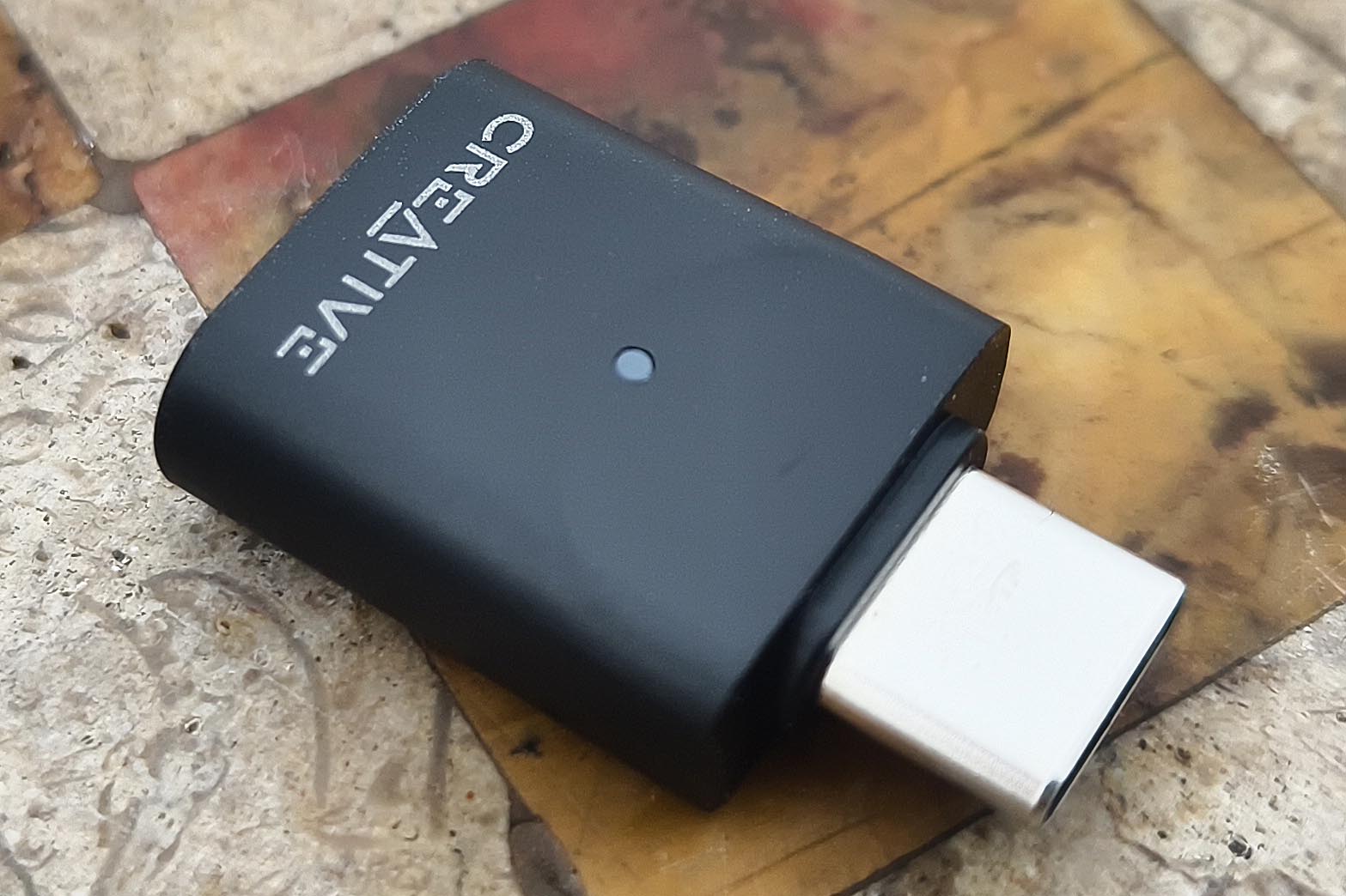 В комплекте также идет миниатюрный (18x15.8x6.5, 2.2 г) адаптер BT-L3, а ведь внутри корпуса уместился не только передатчик, но и целая звуковая карта. Он оснащен коннектором USB Type-C, кнопкой и светодиодным индикатором работы.