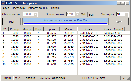 Ну а теперь, собственно моя система и результаты разгона.