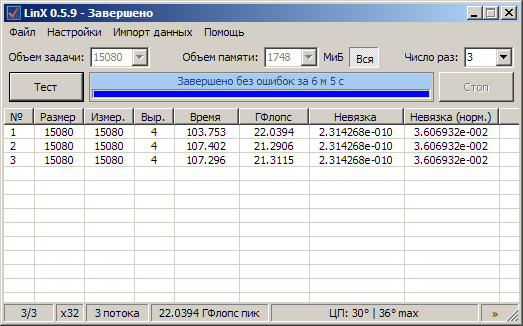 Результат в LinX, кол-во памяти максимально возможное для 32 бит систем.