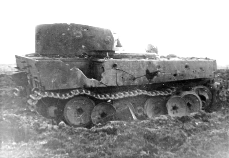 Танк Tiger H1 после попадания 122-мм снаряда.