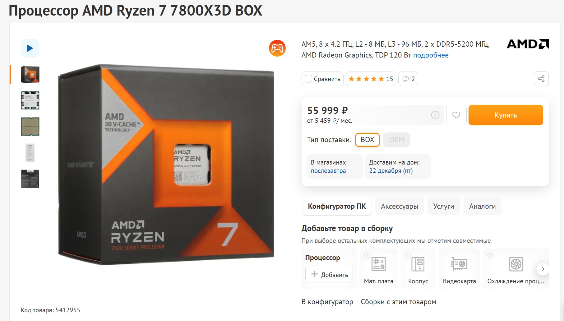 Теперь по поводу проца, тут все просто - берем Ryzen 7 7800X 3D. Я знаю, тут есть еще крутые 7900X и 7950X с этими трехмерками, но честно, переплачивать за них не стоит. Этот Ryzen полностью соответствует всем требованиям и на все 100% раскрывает 7900XTX. Его цена в районе 56 тысяч рублей. За кулисами - 8 ядер, 16 потоков и встроенный разгон с 4200 до 5000 МГц. На нем может быть небольшое снижение производительности в работе, чем, например, у 7700X из-за ограничений частоты, но у нас тут в компе, братан, игровая машина. А вот увеличенные 96 МБ кэша третьего уровня заметно повышают его положение в игровых сценариях. Однако, будь готов, что тут нужно будет приличное охлаждение - или дорогая башня, или впаривай систему жидкого охлаждения.