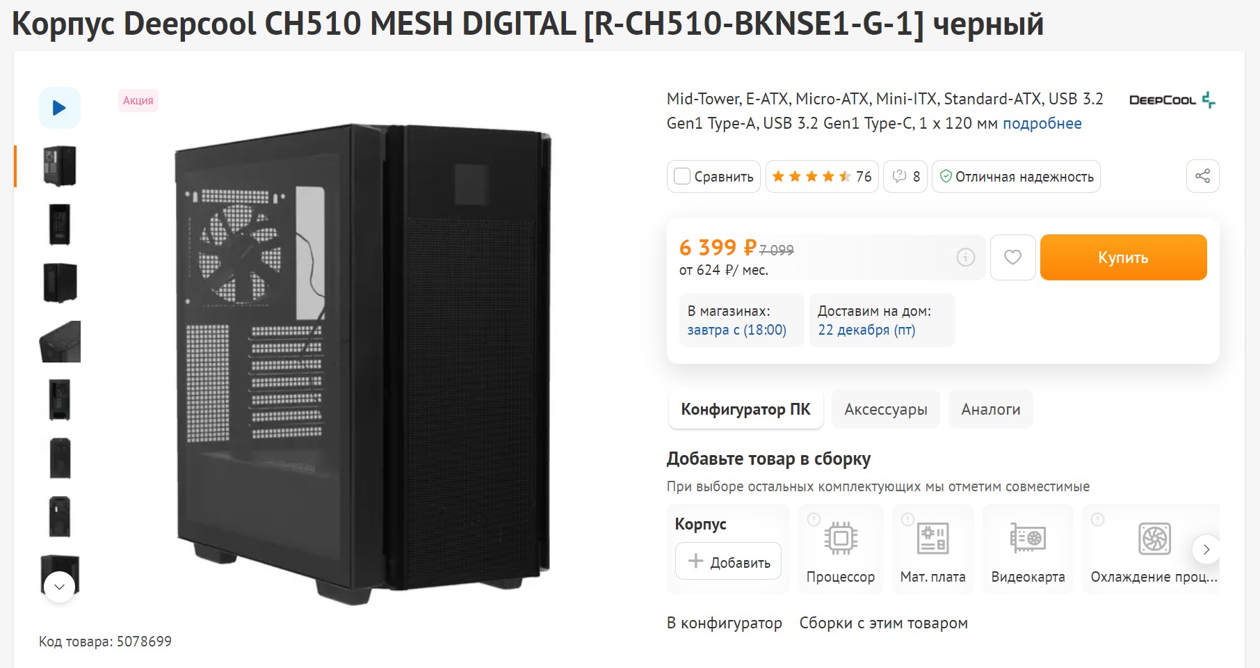Штрихом к завершению является стильный корпус от Deepcool - CH510. Несмотря на свой Mid-Tower форм-фактор, он легко вмещает крупные видеокарты длиной до 380 мм и трехсекционные системы охлаждения водяным охлаждением, как у меня. Вентиляция в порядке. Особенно порадовала возможность отображения температуры процессора и видеокарты на передней панели - стильная фишка. Ещё одним приятным моментом является магнитная боковая крышка из закаленного стекла. Размещение блока питания внизу, а также все разъемы, выведенные на верхнюю панель, придают ему удобство использования. Здесь также есть USB Type-C порт. Корпус стоит менее 7 тысяч рублей, и вместе с ним общая стоимость сборки составит примерно 289 тысяч. Но стоит отметить, что можно экономить на SSD или оперативной памяти, а также выбрать более простую материнскую плату на B650, что позволит уложиться в бюджет в 250 тысяч.