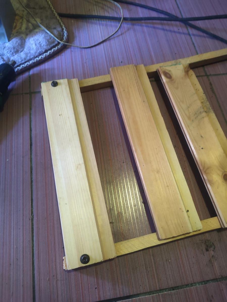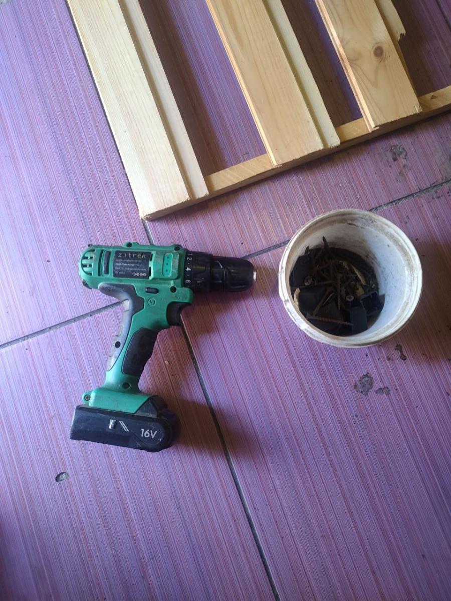 Я уже прикинул, каким будет мой корпус для ПК, но я знал, что надо делать всё последовательно. Итак, нужно сначала прикрутить на саморезы доски к брусу, для этого я пошел взял шуруповерт и благополучно прикрутил первую доску.