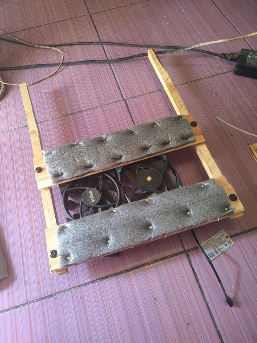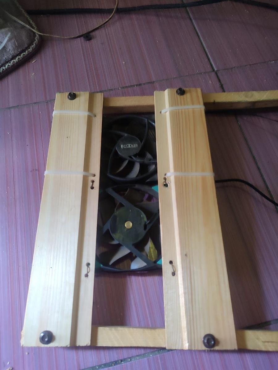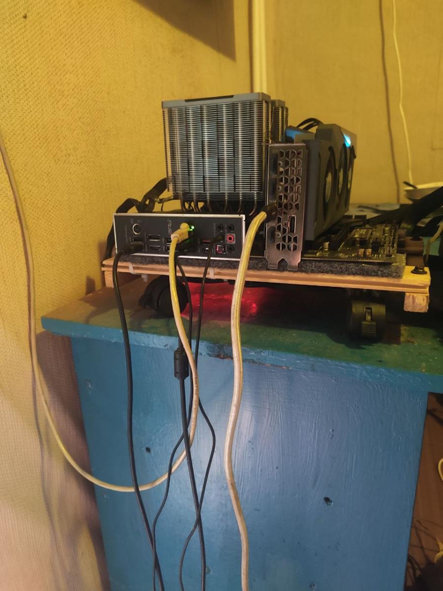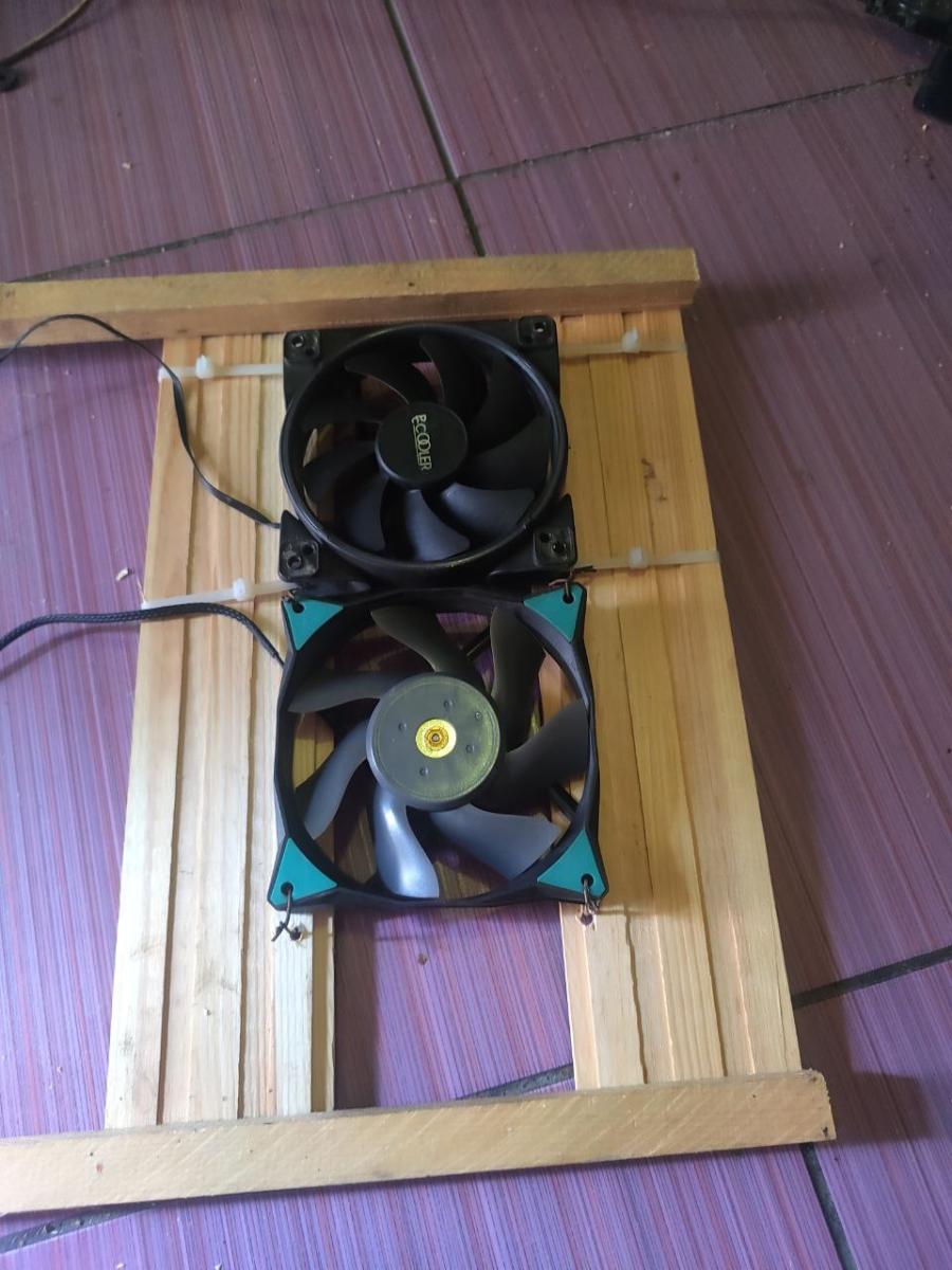 Ну что ж, начало есть. Это уже хорошо. Дальше я взял собранный комплект на AM4 и положил на доски. И думаю, а куда, и главное, как я эти вентиляторы приделаю, ведь они толще квадратного бруса, а значит, что они будут в вакууме крутиться, не принося пользы моему компьютеру, а точнее, не охлаждая материнскую плату.