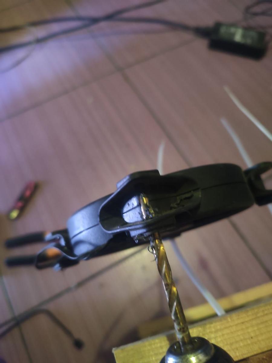 Но тут всё пошло не как надо. Стяжки оказались слишком широкие и практически не влазили в техническое отверстие вентилятора. Я даже их с помощью плоскогубцов не смог выдернуть. Взял шуруповерт, закрепил сверло и расширил техническое отверстие. И закрепил первый вентилятор.