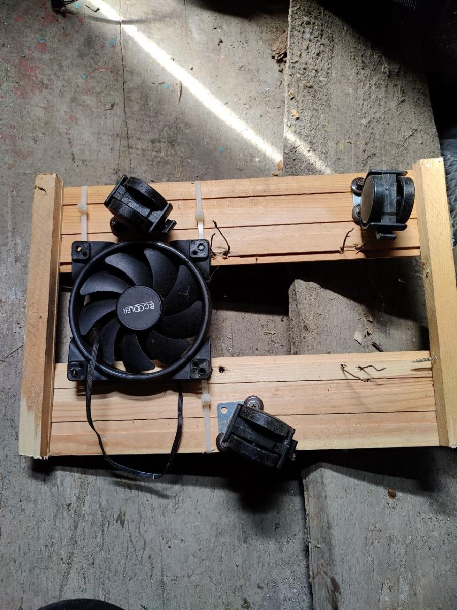 Но мне этот вентилятор всё ещё нужен, так что я решил разобрать свой мини-корпус. Конечно, не хотелось трогать такую компактную сборку - всё аккуратно, по уму сделано. Но что поделаешь? Покупать новый вентилятор сейчас нецелесообразно. Тем более, он там держался всего на трёх стяжках. Взял в руки пассатижи, перекусил стяжки - и без особых проблем снял вентилятор. После этого аккуратно приложил его к кулеру…