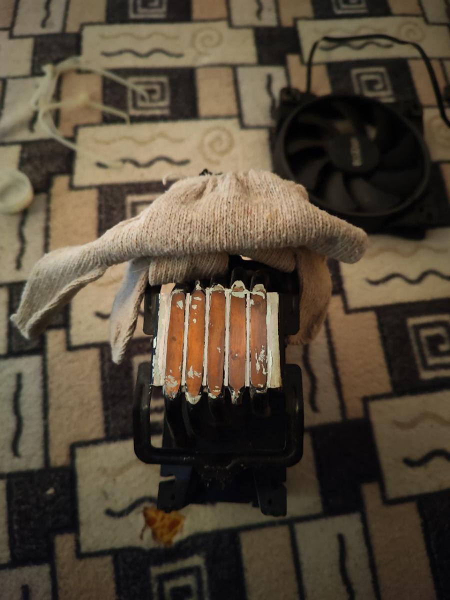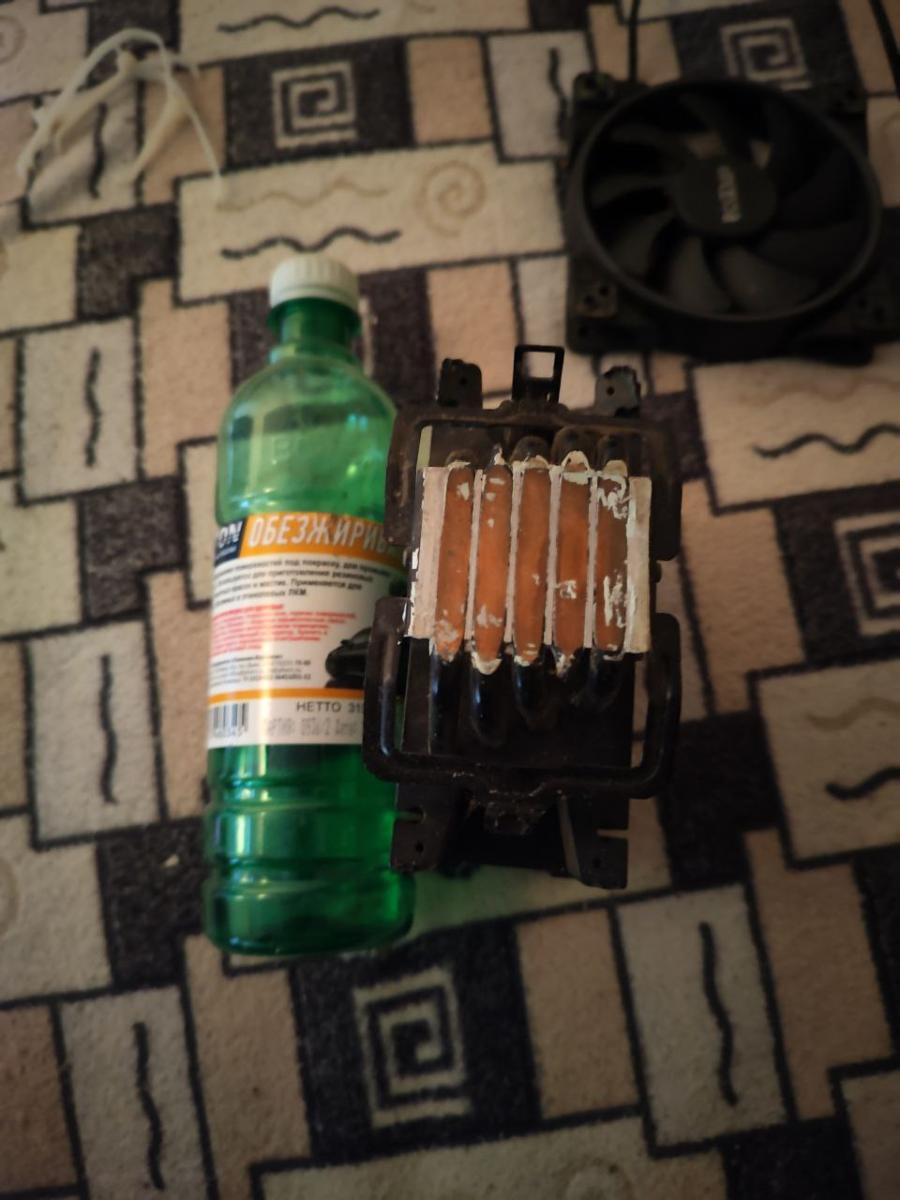 «Ну вот и всё», - скажете вы. Осталось только поставить кулер в ПК, и зачем вообще писать целую статью? Но не тут-то было, ребят. Я посмотрел на подошву кулера, и что я там увидел? Двухгодовалую термопасту, которая уже больше похожа на герметик. Кто сталкивался - тот поймёт.