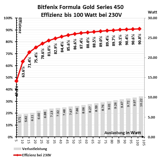 КПД при нагрузке до 100 Вт. Интервал 5 Вт (согласно тесту TweakPC.de)
