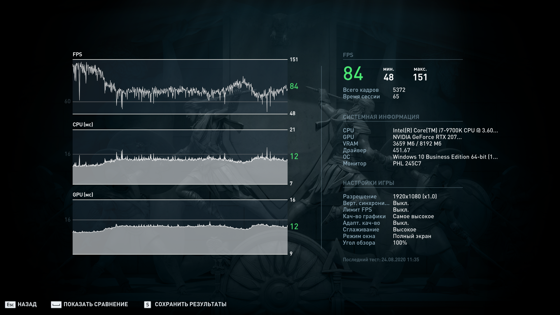 Почти 10% бесплатной производительности. Если этого мало, внимание на график кадров. Есть разница? А теперь смотрим на цифру с минимальным фпс. Это один из плюсов правильной настройки ОЗУ. В играх пропадают просадки и рывки, график кадров становится плавнее.