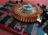 Также продолжает фамильный портрет кулер, цветом имитирующий медь, хотя на самом деле это крашеный алюминий (мелочь, а приятно), к слову оказался тихим довольно.