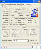 После инсталляции операционной системы и установки необходимых драйверов, мною была предпринята попытка снятия информации с помощью программы Cpu-Z 1.30. Видно что плата немного завышает частоту шины, что в свою очередь выливается в повышении на 5MHz с небольшим результирующей частоты процессора.