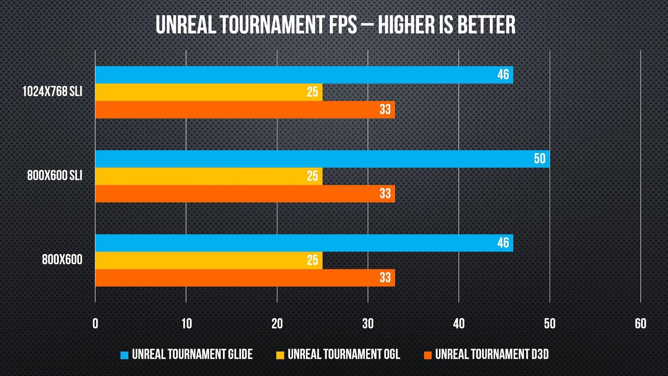 В Unreal Tournament ни OpenGL, ни Direct3D не получили преимущества от добавления второй карты.