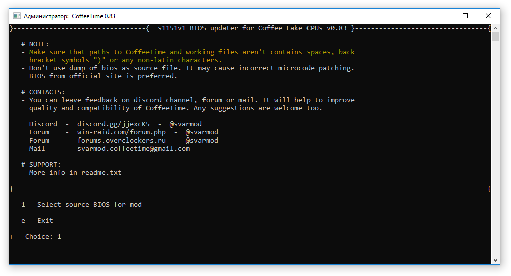 Модификация закончена, готовый файл биоса лежит в папке CoffeeTime, на экране последние напутствия и рекомендации по прошивке.