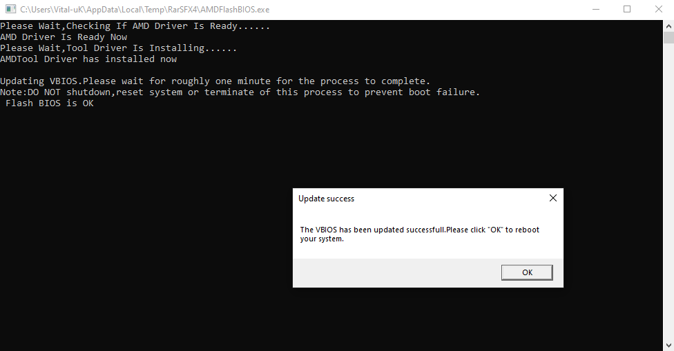 Процесс прошивки прост до неприличия: запустить скачанный exe-файл, перезагрузиться, повторить для второго положения переключателя. Естественно, не стоит выключать или перезагружать ПК в те недолгие несколько секунд, когда идёт непосредственно прошивка.