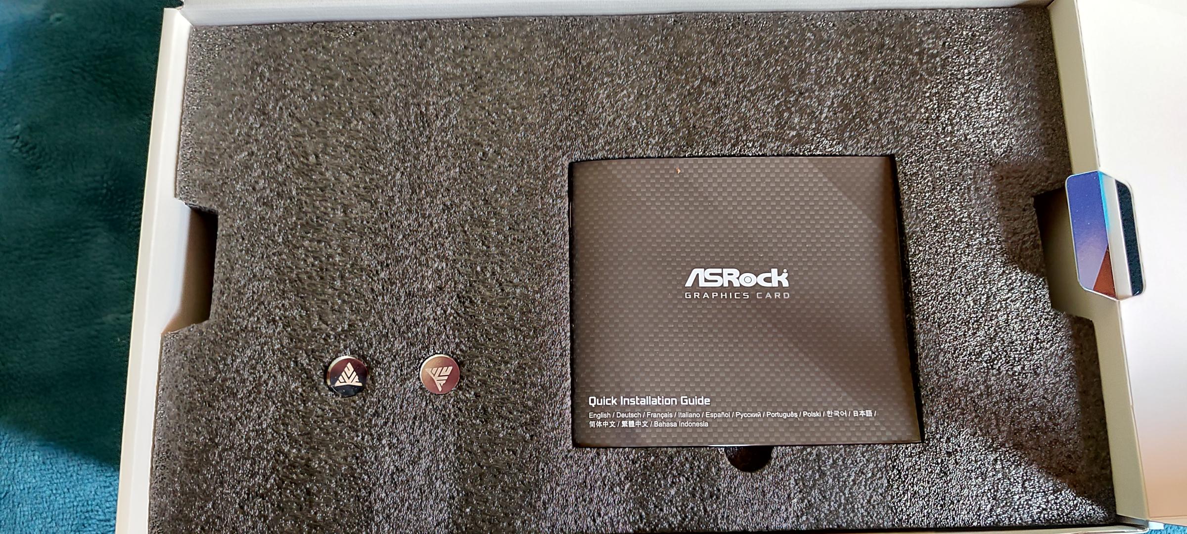 Внутри коробки вспененный полиэтилен, в котором находится руководство по эксплуатации, 2 заглушки для водоблока, видеокарта в антистатическом пакете.