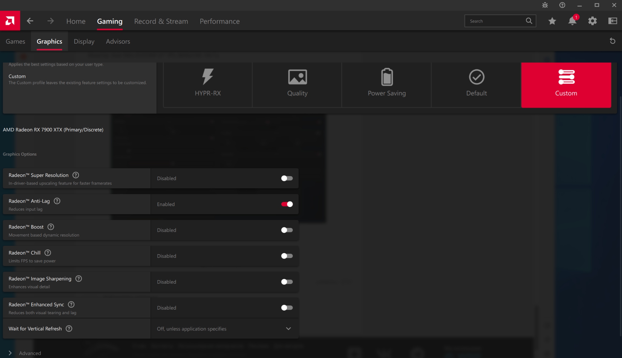 Из дополнительных настроек в драйвере активирована технология Antilag