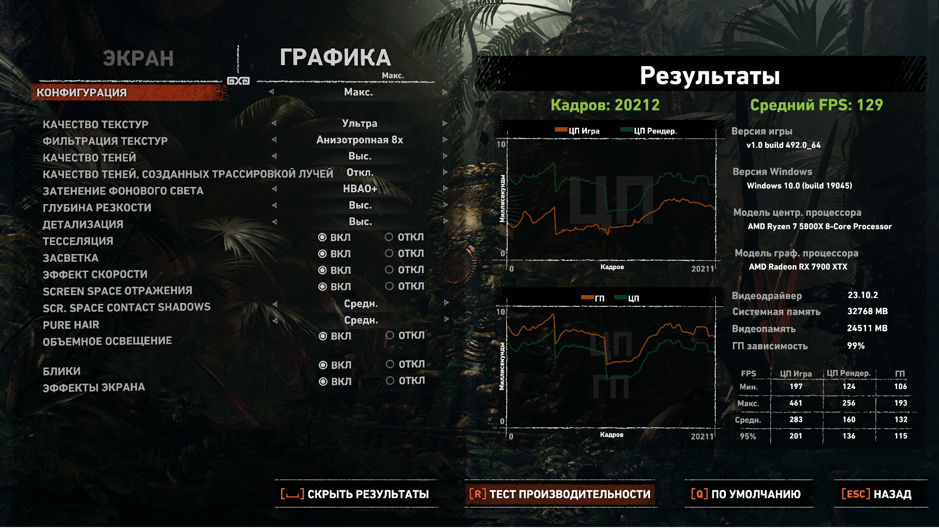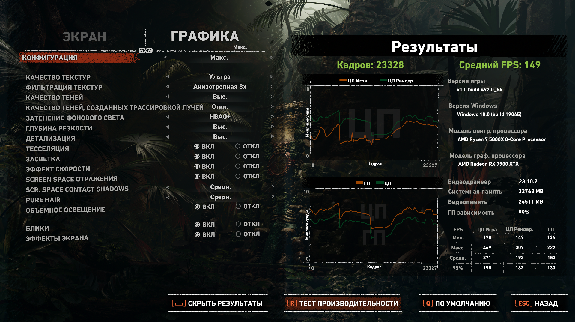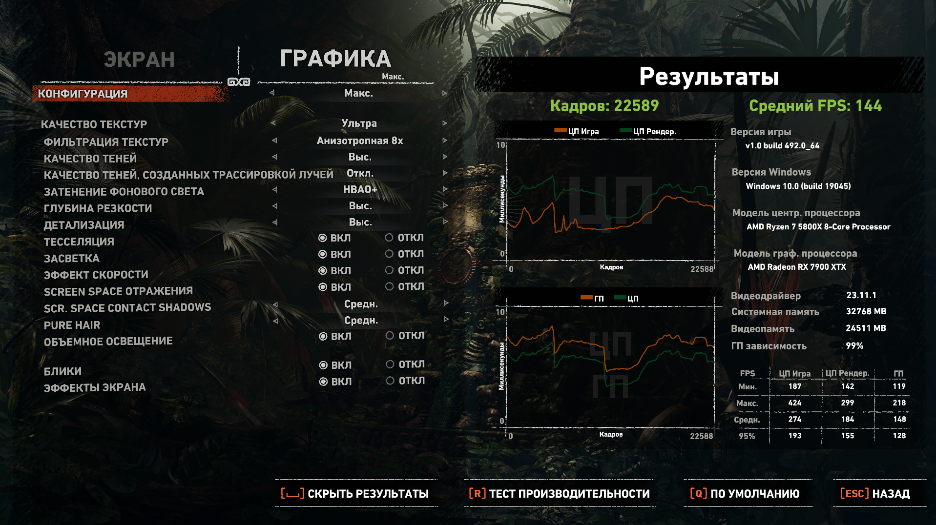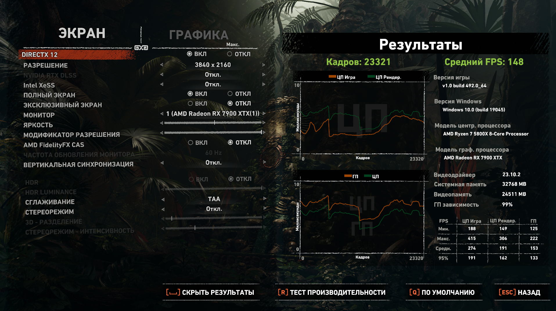 Игры, настройки, результаты тестирования
