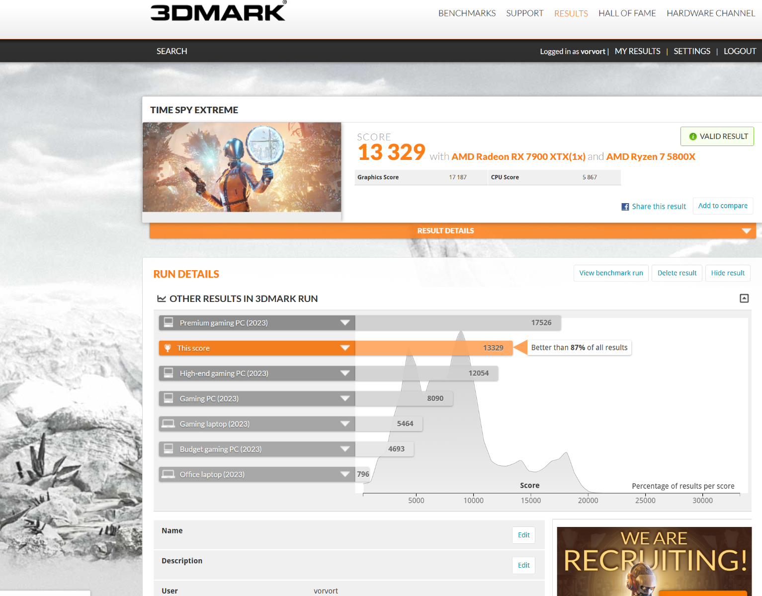 В Time Spy Extreme ничего выдающегося, 9-й результат в мире среди 5800Х + 7900XTX