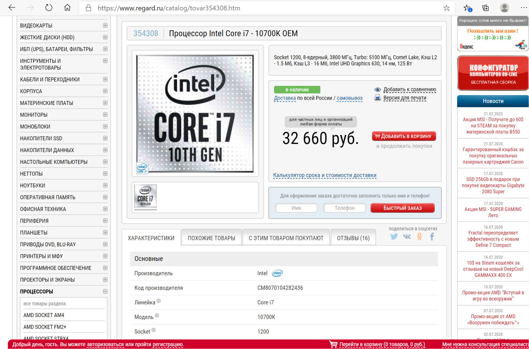 Небольшой пример. В популярном российском магазине "Регард" 8-ми ядерный 16-ти поточный процессор Intel Core I7 10700K стоит 32660 рублей (цена от 29 июля 2020 года)