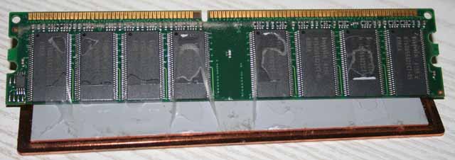 Короче безделушки и все… И мне это явно надоело! Память и без них гонится ТОЧНО ТАКЖЕ как и с ними… даже без обдува реек!... И тут я не долго думая решил сделать из них водоблоки! Саму идею припаивать медные трубки я подсмотрел у пофигиста, там он делал этим методом водоблок на чипсет… этот метод подходит только для элементов с низким тепловыделением!